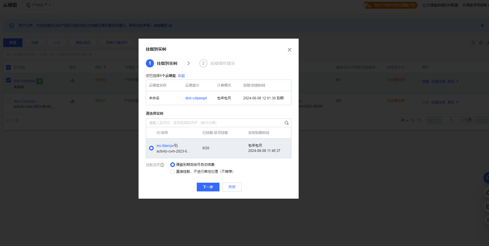 选择需要扩容的盘,选择好扩容容量,点击下一步,确认并购买